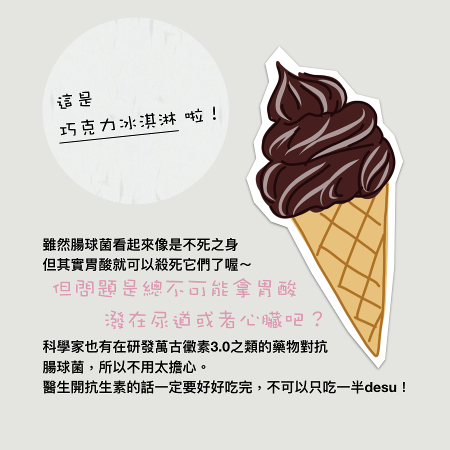 一定都聽媽媽說過,早睡早起腸胃才會好,但你知道嗎❓ 小腸經其實是未時(下午一點~三點)在運行喔‼ 致病菌感覺都是大壞蛋,最好不要靠近人類,但你知道嗎❓ 某個連續多年入榜十大院內感染的致病菌其實是我們人體正常的腸道菌‼ 欸!!??? 這個致病菌是誰呢? 就是今天的主角:腸球菌啦! 💬想知道腸球菌的兩個盾牌是什麼嗎? 💬想知道是什麼讓腸球菌成為補血大法師嗎? 右滑觀看 微微生物BACTERIA 系列第一彈:大法師.腸球菌 冬天就是要吃冰冰涼涼的霜淇淋!